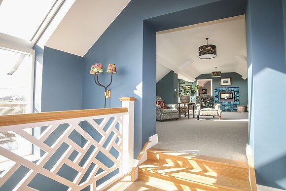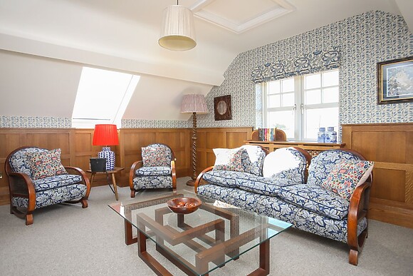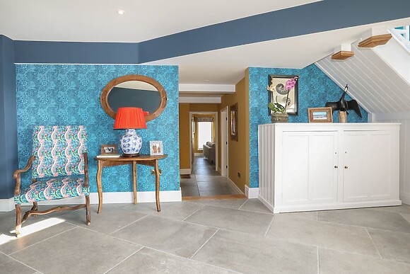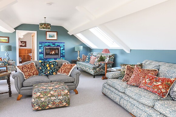 A fabulous house  with gorgeous views from many of the beautifully decorated rooms. The William Morris designs are fabulous.Wellequipped kitchen, lots of seating areas inside and out including 3 balconies. Thank you to the owners who have created a thoughtful, highend, holiday home for us to enjoy. Very much appreciated.We had a lot of fun in the games room.  We enjoyed lovely coastal walks and a bracing paddle in the sea  a very short walk from the house. Enjoyed hearing and seeing the birds every day. It was such a peaceful, relaxing week we returned home feeling invigorated and perhaps keen to add a William Morris design or two to our home...