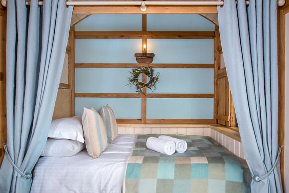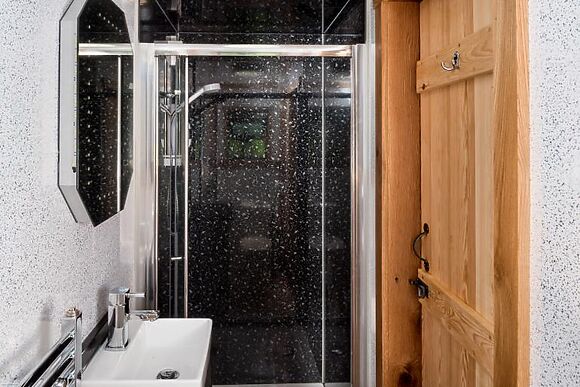The accommodation is cleverly designed open-plan with a neat kitchen, wood burner and double patio doors leading to the decking for those spectacular views. There's a small loft with a double bed for older kids. A full-size shower in the stylish bathroom completes it. Relax on the deck, fire up the BBQ, or just take in the tranquility.