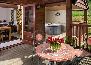 Daffodil Lodge in Talachddu, Brecon Beacons is a luxury lodge with jaw-dropping views from every angle. This lodge is set on a working farm, offering a truly remote experience. You'll be amazed by the fantastic vistas of the Black Mountains and Mynydd Troed. What's so special about it? Not only does it provide a roaring fire and a luxurious hot tub, but you can enjoy private woodland walks right from your doorstep. Nature lovers and relaxation seekers will feel right at home.